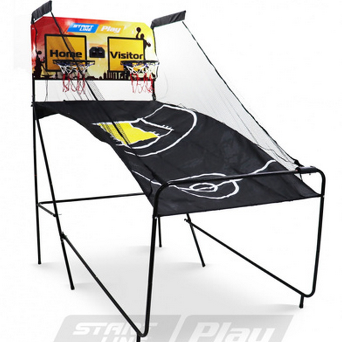 Баскетбольный тренажер от Start Line Play очень удобен при выполнении бросков в кольцо с различных направлений, предполагает соревнования в паре, автоматический подсчет очков. Предназначен для отработки техники броска с любой позиции без потери времени на ловлю мяча. Увеличивает темп и эффективность тренировки. После броска мяч скатывается по желобу к спортсмену. Конструкция компактна, в сложенном виде занимает мало места. В комплекте поставляется 4 мяча.