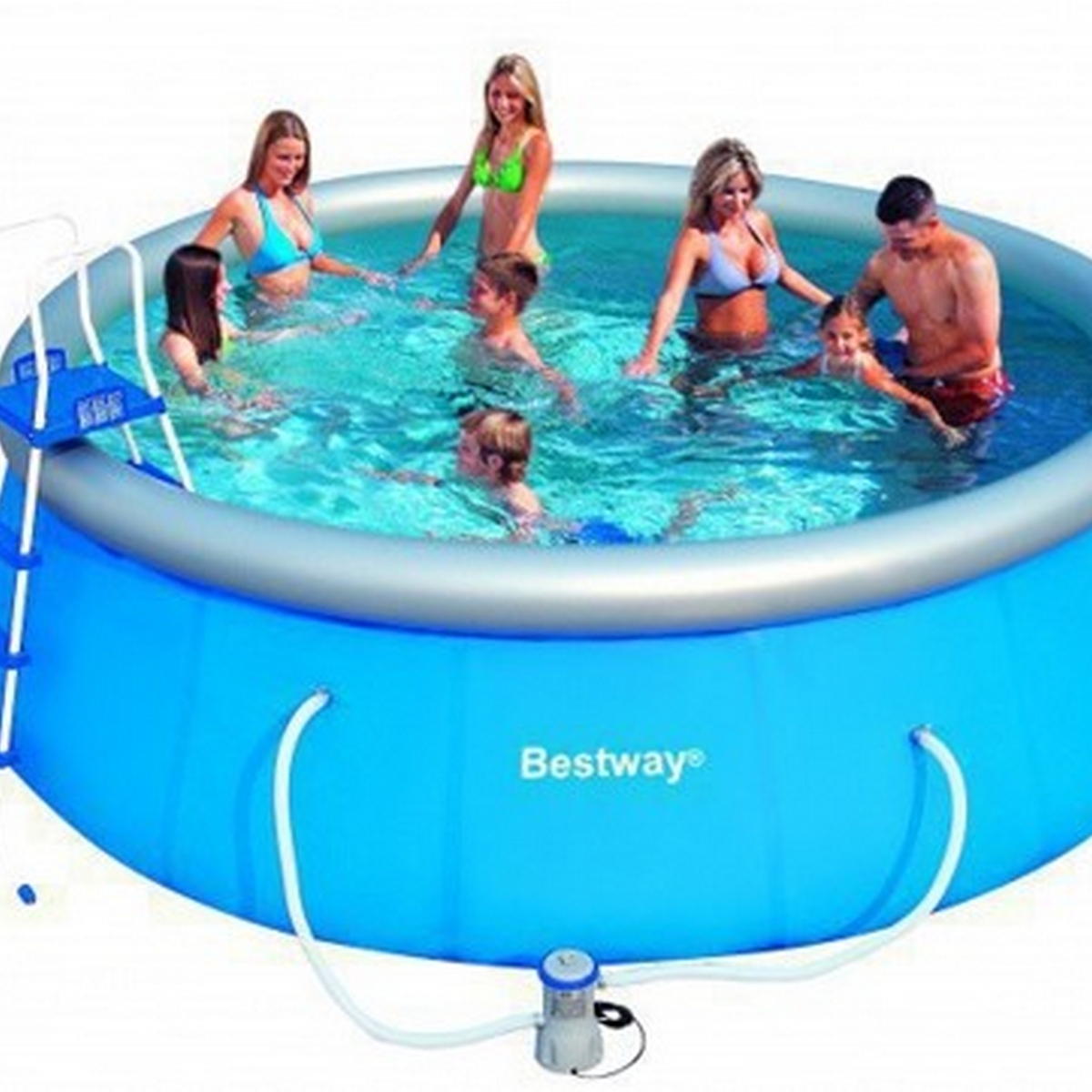 Надувной бассейн Bestway серии Fast Set легко и быстро устанавливается без применения технических средств. Процесс сборки бассейна до наполнения водой занимает 10 минут. Стенки бассейна, изготовлены из армированного ПВХ, внешний слой - полиэстр, для особой прочности. Поддержка бортов осуществляется при помощи надувного кольца, которое поднимается по мере заполнения бассейна и расправляет его стенки.