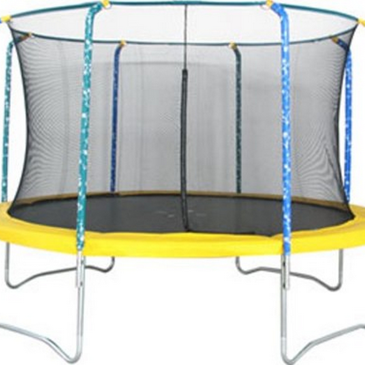 Батут Tramp Sun Trampoline 10', новинка 2010 года! Комплект: батут с защитной сетью-ограждением диаметром 3,0 метра. Комплекты Sun Trampoline - лучший выбор для детей и подростков! Технические характеристики: Прыжковая поверхность - полипропилен "Перматрон" (производство США). Соединение с рамой - 54 пружины, длиной 18 см. Рама состоит из 1,5 мм гальванизированной стали, в конструкции рамы использована "Т-секция". В комплекте мягкий защитный мат для рамы и пружин. Защитная сеть-ограждение создана для более безопасного пользования батутом. Максимальная нагрузка на батут: 70 кг. Цвета: защитный мат - желтый, стойки - зеленый или синий с рисунком. Размеры и вес в упаковке: 158 х 43 х 27 см / 75 кг. Высота батута: 76 см. Вес батута: 71 кг.