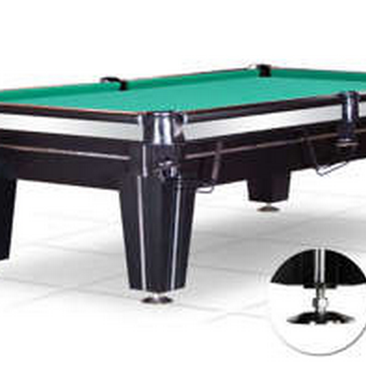 Бильярдный стол в стиле Hi-Tech для пирамиды. Конструкция стола включает в себя ряд новейших разработок, используемых в производстве бильярдного оборудования, что поднимает эту модель на новый уровень качества, долговечности и профессионализма: 1. Рама и ножки стола изготовлены из переклеенных брусков твердых пород дерева, что обеспечивает прекрасную жесткость и отличную устойчивость к перепадам температур. 2. Каждая из ножек крепится к боковой части рамы (царге) двумя болтами, снабженными шайбами специальной формы, которые не позволяют каркасу стола расшатываться в процессе эксплуатации. 3. Ширина борта, изготовленного из массива твердых пород дерева, увеличена с распространенных 90 мм до 100 мм, а длина крепежного болта до 120 мм., что позволяет игроку полностью контролировать траекторию движения шаров. На Ваш выбор предоставляется два варианта дизайна - классический черный и с зеркальными вкладками на бортах. Вам остается только решить - какой из них больше украсит Ваш интерьер. 4. Стол оснащен лузами с выкатом со скобами специальной конструкции, обеспечивающие их прочность и износостойкость. 5. В ножках стола установлены металлические домкраты с болтом увеличенного сечения и длинной втулкой, позволяющие регулировать высоту бортов в более широком диапазоне. Стол может быть укомплектован опорами с основанием круглой или квадратной формы - по Вашему выбору. Тип игры: Пирамида Основа игрового поля: Ардезия Толщина плит, мм: 25 мм из трех частей Цвет: чёрный Бортовая резина: DBO Speedball Сукно: Iwan Simonis (желто-зеленое) Лузы: латунь, кожа, лен (с выкатом) Диаметр шара, мм: 68 Минимальные размеры помещения, см: 584 х 457 Размер: 9 футов