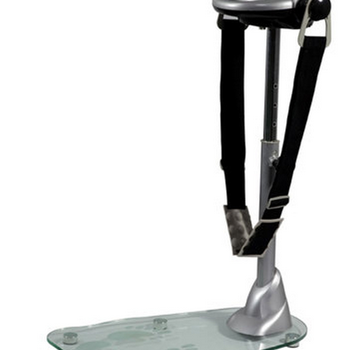 Опорная площадка из закаленного стекла и имеет матовые контуры ступней, для правильного расположения ног.