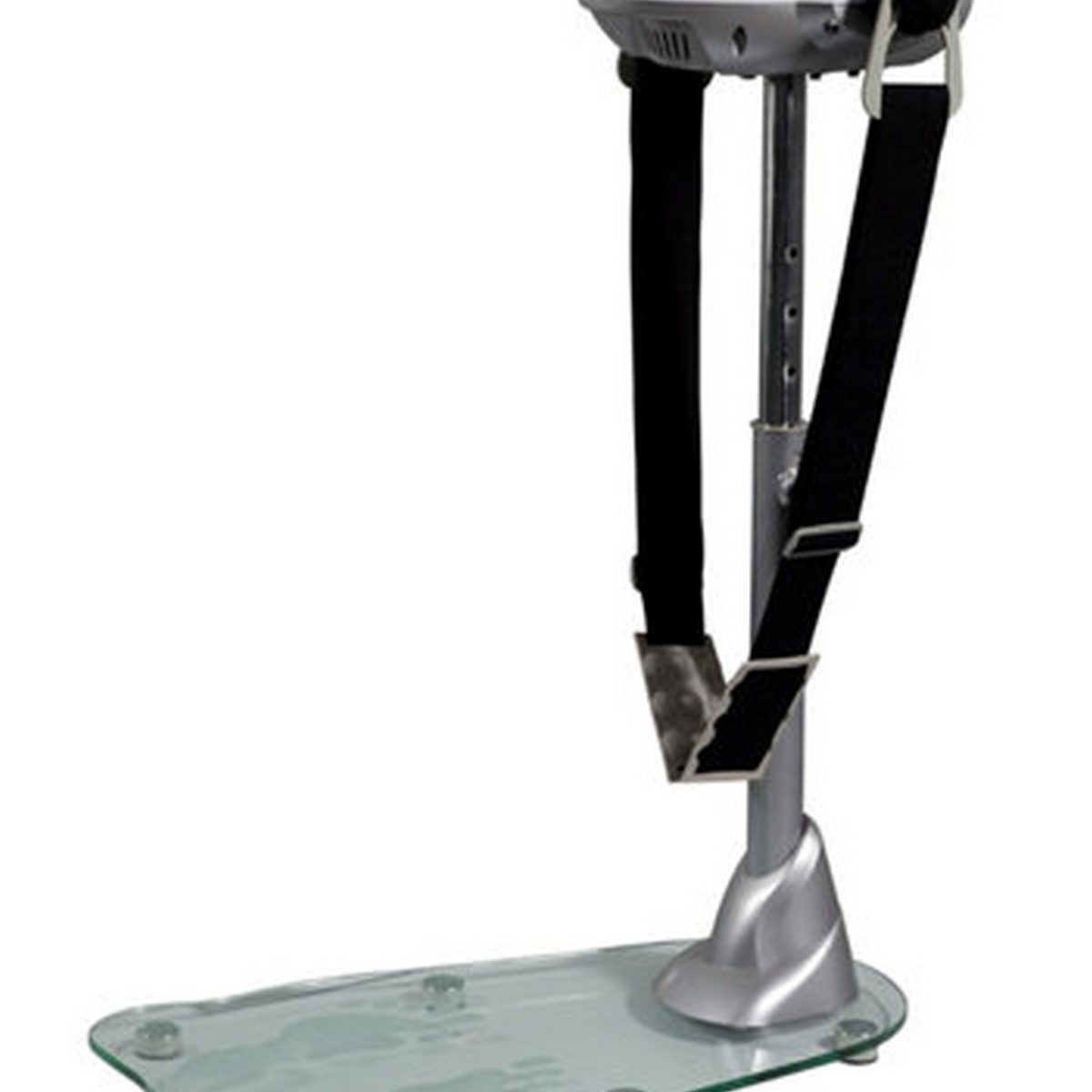 Опорная площадка из закаленного стекла и имеет матовые контуры ступней, для правильного расположения ног.