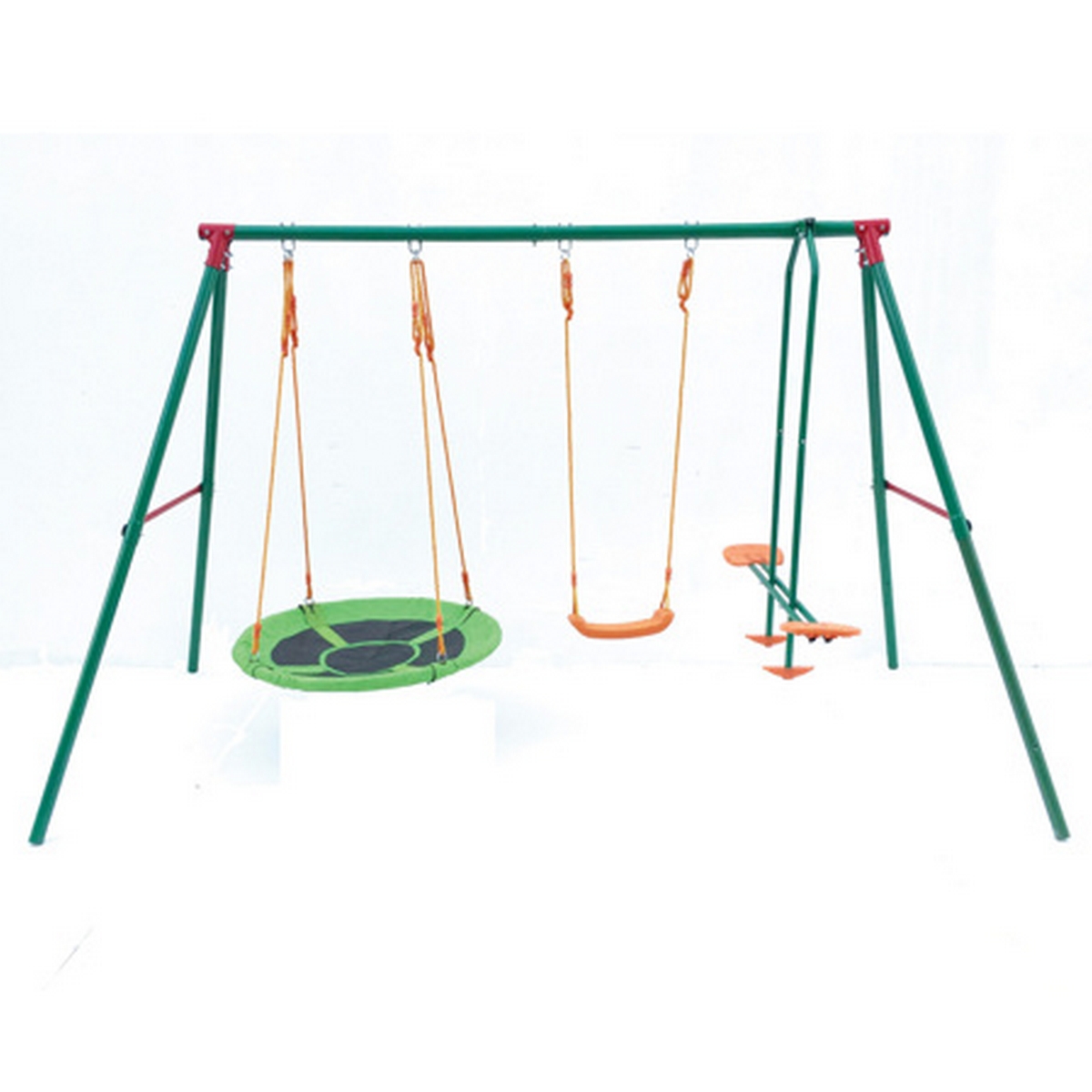 Материал сидений качелей - пластмасса, устойчивая к воздействию солнечных лучей.