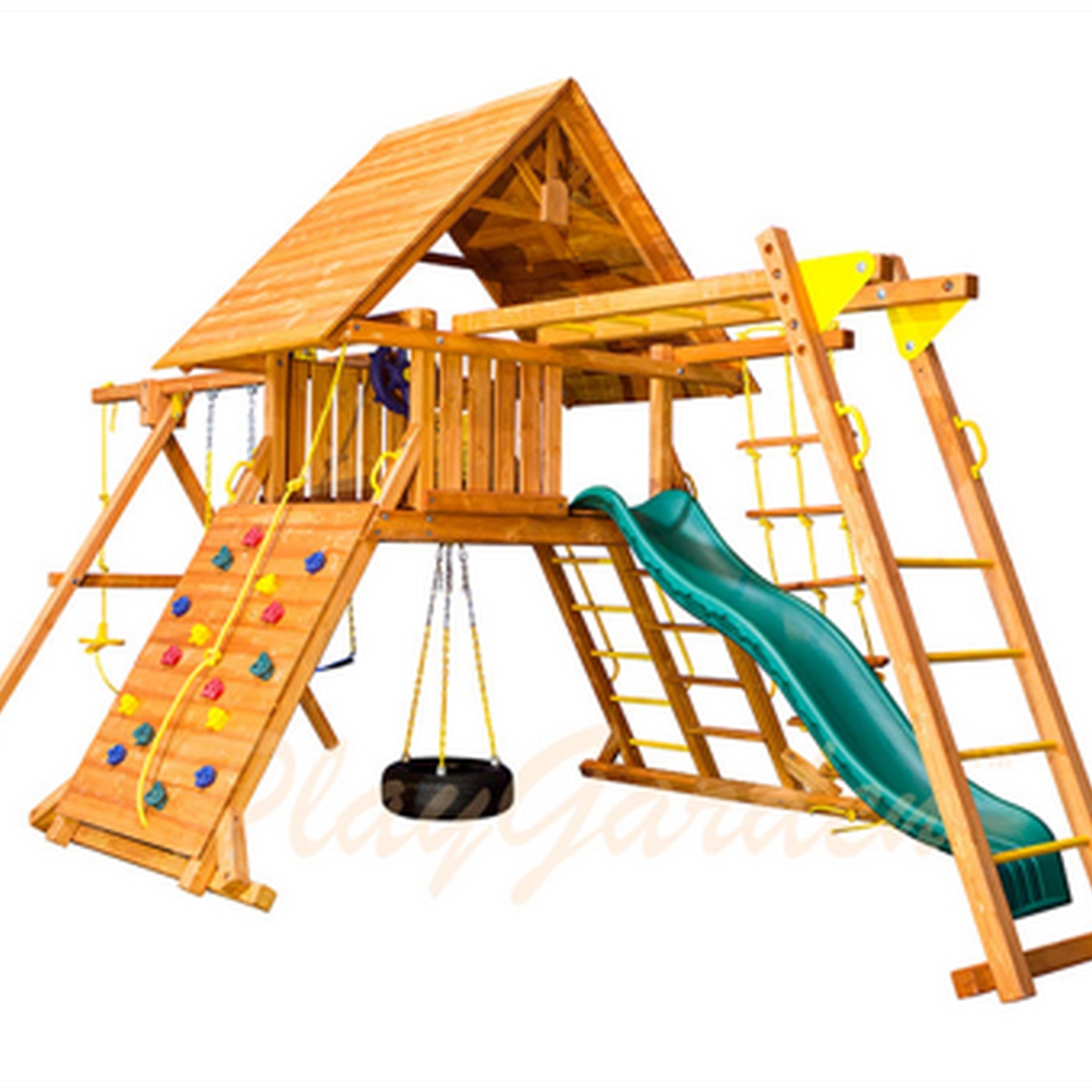 Игровой домик Castle c деревянной крышей, высота игровой платформы 1,52 метра, размеры игровой зоны 1,2x1,8 метра.