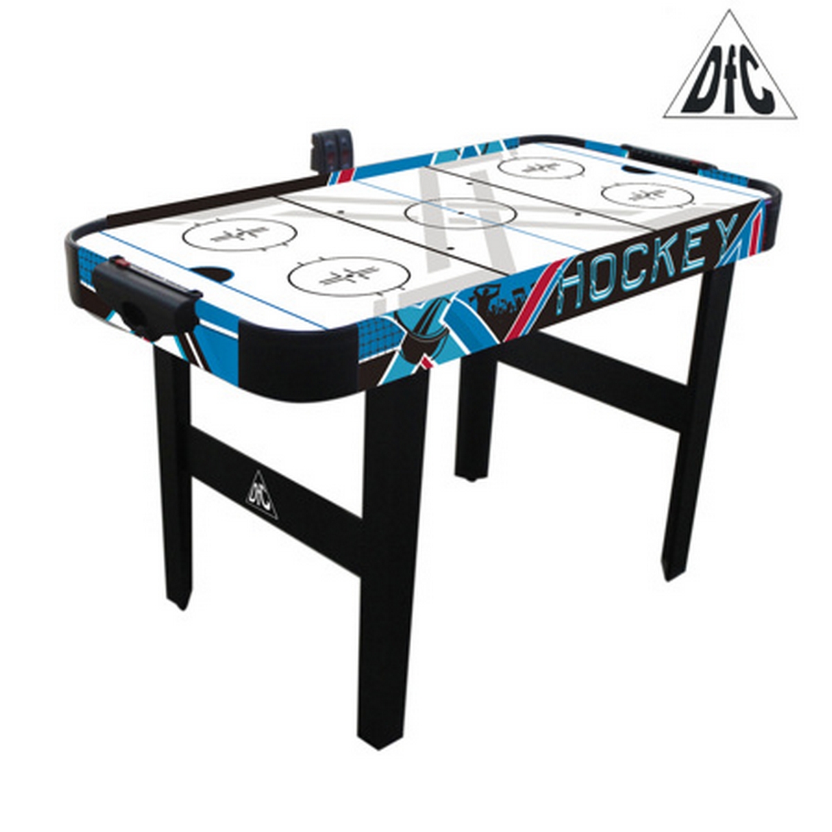 Игровой стол будет не только отличной покупкой для себя, но и прекрасным подарком. Игра в аэрохоккей очень эмоциональная, захватывающая и проходит на больших скоростях. Почувствуйте звуки и атмосферу знаменитой и популярной игры! Аэрохоккей является отличным развлечением дома или на даче. Аэрохоккей SIRIUS оборудован электронным табло для подсчета забитых шайб. И дополнительно возле каждого игрока установлен механический счетчик. Стол комплектуется необходимым для игры набором аксессуаров: 2 биты и 2 шайбы красного цвета. Размер биты: 65 мм Размер шайбы: 55 мм Корпус выполнен из специально обработанного МДФ, сверху покрытого прочным ПВХ ламинатом. Компрессор подает воздух через отверстия по всей поверхности стола. Размер стола 100 х 50 х 75 см Размер игрового поля 98 х 48 см Толщина игрового поля 3 мм Напряжение 230В Размер упаковки см Объем упаковки м? Вес нетто 10,2 кг Вес брутто 11,7 кг Бренд DFC Страна производства Китай Гарантия 12 месяцев