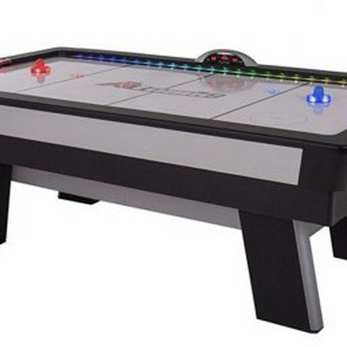 Эффектный стол для аэрохоккея с мощным компрессором, который подает воздух через перфорированные отверстия на игровом поле, создавая идеальную воздушную подушку для быстрого полета шайбы.