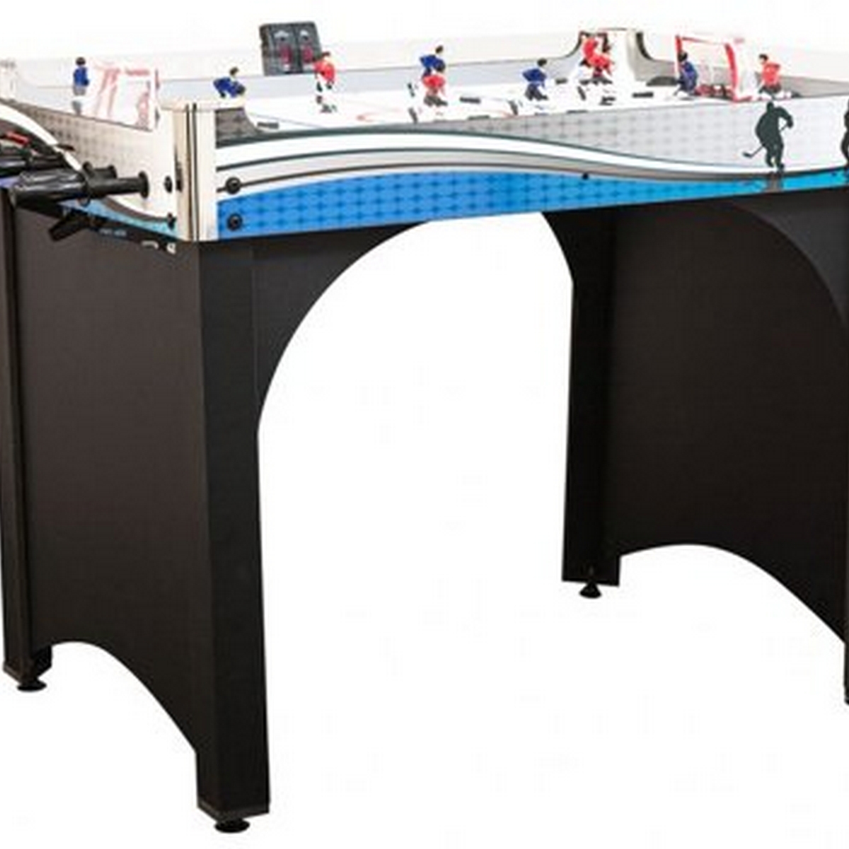 Корпус настольного хоккея Alaska поставляется в собранном виде. Вам лишь необходимо установить игроков, прикрутить ножки и механические счеты. Стол готов к игре!
