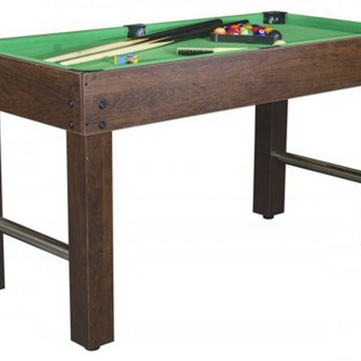 Бильярд (пул), габариты: 117 х 56 х 68,5 см (включая уровень ног), игровое поле: 114 х 53, МДФ 5 мм.