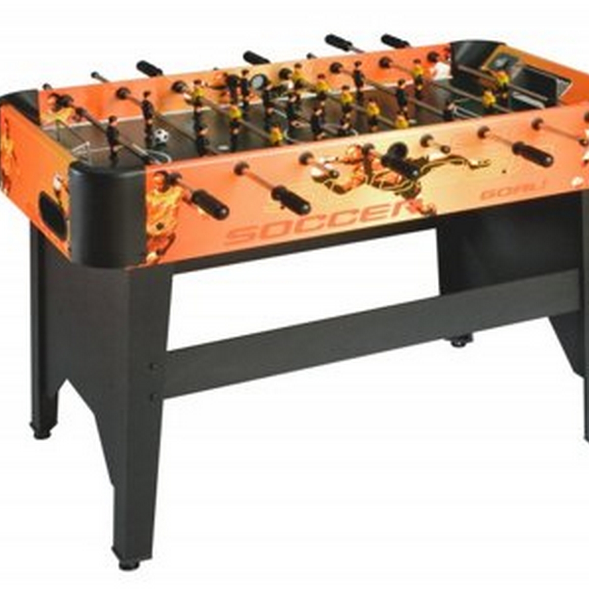 Характеристики ДхШхВ 120 х 61 х 84 см Основа игрового поля ЛДСП Игровое поле 104 x 56 см Тип ручек пластиковая Мяч AE-02 (36 мм) Тип штанги сквозная Диаметр штанги13 мм Штанги (материал)полые, хромированная сталь Размер упаковки 126 х 62 х 16 см, 24 кг Количество игроков 22 Материалпластик, металл, ЛДСП Вес 21 кг Цветоранжево-черный Страна происхождения Китай Подробное описание Модель, которая обрадует любителей футбола младшего и среднего школьного возраста - настольный футбол (кикер) «Dybior Neapel». Этот кикер идеально подойдет для веселого и интересного времяпровождения. Яркий дизайн стола, выполненный в классических футбольных цветах, украсит интерьер любой игровой комнаты. Основные характеристики настольного футбола Amsterdam: Сконструирован для безопасности детей: закругленные углы. Малые размеры стола позволят разместить его даже в небольших помещениях. Прочная конструкция обеспечит высокую надежность даже при сильных нагрузках. Алюминиевые сетчатые ворота. Стол выполнен из ламинированной древесины со специальным покрытием, которое защищает его от царапин и мелких мехинических повреждений. Эргономичные пластиковые ручки обеспечивают удобный захват. Оснащен двумя механическими счетчиками очков причудливого дизайна. В комплект входят мячи для игры (2 шт).