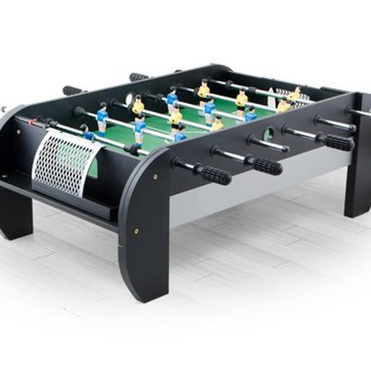 Тип игры: кикер Цвет: Черносерый Вес: 12 кг Размер: 97х54х35 см Упаковка: 101x54,5x11, 14 кг Ноги: 95x15 мм MDF Штанги: Ф12.7 хром Мяч: АЕ-02 (4шт Ф31мм) Игровое поле: 780x480х5мм MDF Этот маленький столик может оказать очень большую услугу в процессе времяпровождения работников небольших офисов. Также, эта модель будет интересна тем, кому не хватает места для установки стола для кикера в домашних условиях. Иногда, покупая настольный футбол детям в подарок, родители сами с удовольствием включаются в процесс игры. Эргономичные пластиковые ручки обеспечивают удобный захват. Оснащен двумя механическими счетчиками очков. В комплект входят мячи