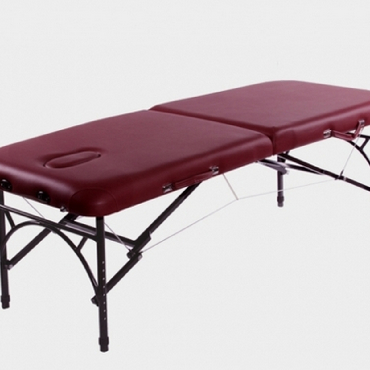 В качестве наполнителя используется мягкий поролон толщиной 5.1 см. Материал обивки – поливинилхлорид высшего качества (PVC Soft Touch™ Vinyl) толщиной 0.90 мм. Высота стола регулируется в 8-ми положениях в диапазоне от 60 до 81 см. Аркообразная форма передней и задней частей рамы позволяет массажисту сидя делать массаж головы и плеч. Предусмотрены отверстие для лица и заглушка. Размер стола – 184 см. в длину и 71 см. в ширину, максимальный вес пользователя составляет 227 кг.
