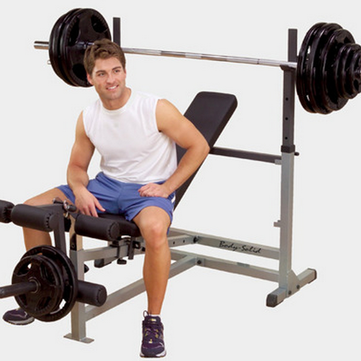 Универсальная скамья для жима олимпийской штанги Body Solid GDIB-46L предназначена для выполнения тяги штанги, жима лежа, жима с положительным и отрицательным наклоном, упражнений для плечевого пояса и жима сидя. Спинка регулируется в 6 положениях от вертикального до отрицательного угла. Телескопические стойки для удержания грифа имеют несколько положений регулировки по высоте. Комфортабельное утолщенное сидение DuraFirm™ фиксируются пружинными штифтами.