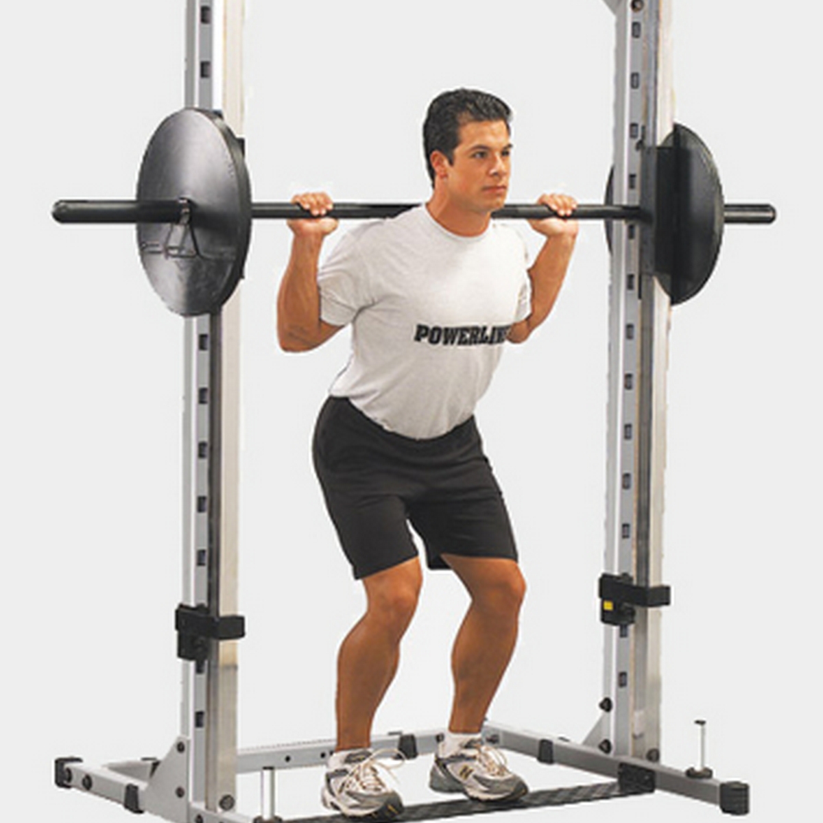 4 стойки из прочной стали 50*50 мм. поддерживают и направляют запатентованный передвижной механизм Super-Glide – он отличается надежностью и может эксплуатироваться в самых интенсивных режимах. 14 позиций блокировки и регулируемые штифты безопасности – залог безопасной тренировки даже при самых больших нагрузках. Гриф диаметром 25 мм., опционально адаптеры OAS14.