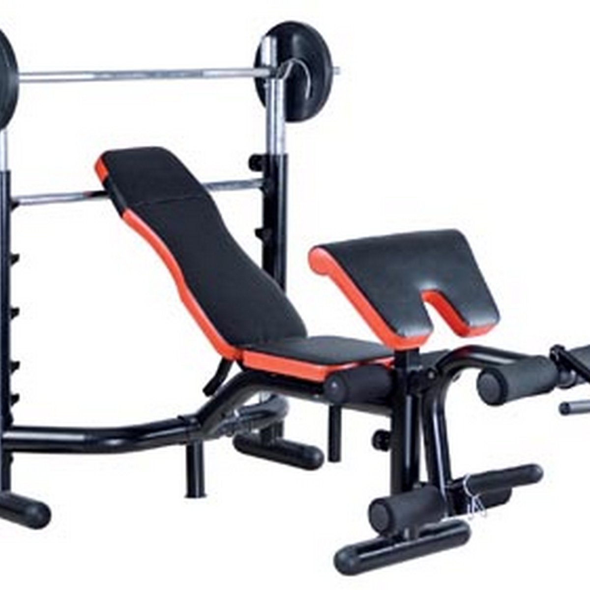 Этот тренажер может заменить небольшой тренажерный зал, обеспечивая возможность полноценной тренировки со штангой и гантелями. - Прочная устойчивая конструкция выполнена из металлических труб диаметром 60 и 70 мм. - Регулируемые по высоте стойки под штангу с замками безопасности позволят выполнять как жимы штанги, так и приседания.