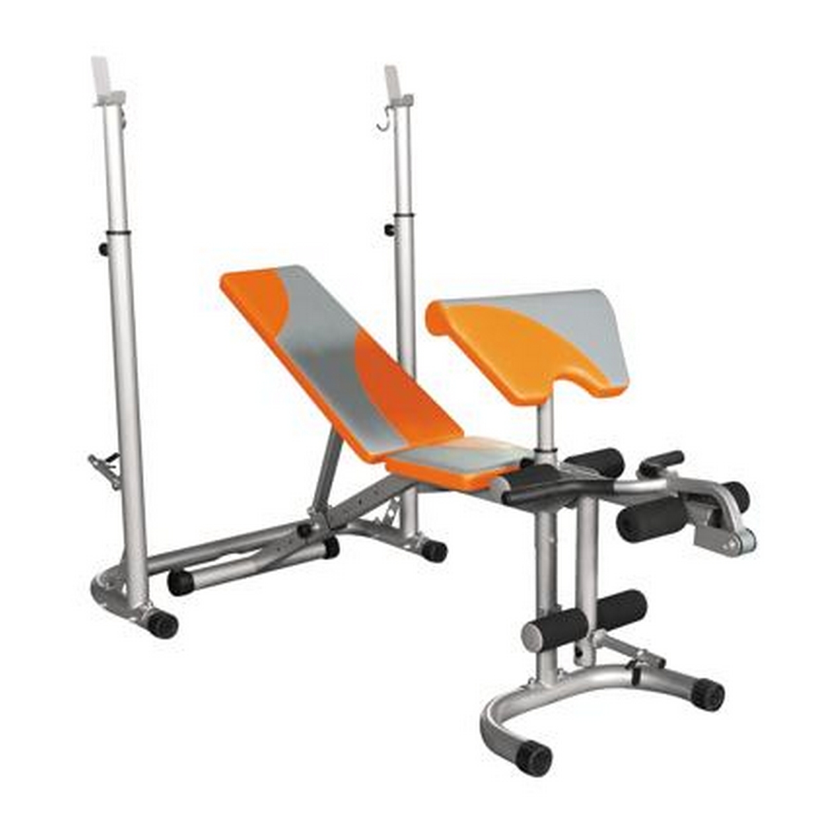 предназначена для выполнения упражнений из положения "сидя" и "лёжа" для тренировки мышц верхнего плечевого пояса, рук, ног и пресса; оборудована партой и тягой для тренировки бицепсов; возможно использование стойки для штанги и скамьи отдельно; регулируемый наклон спинки сидения; материал основной рамы: стальная круглая труба 50х1,5 мм.; вес пользователя неограничен; масса тренажёра 42 кг