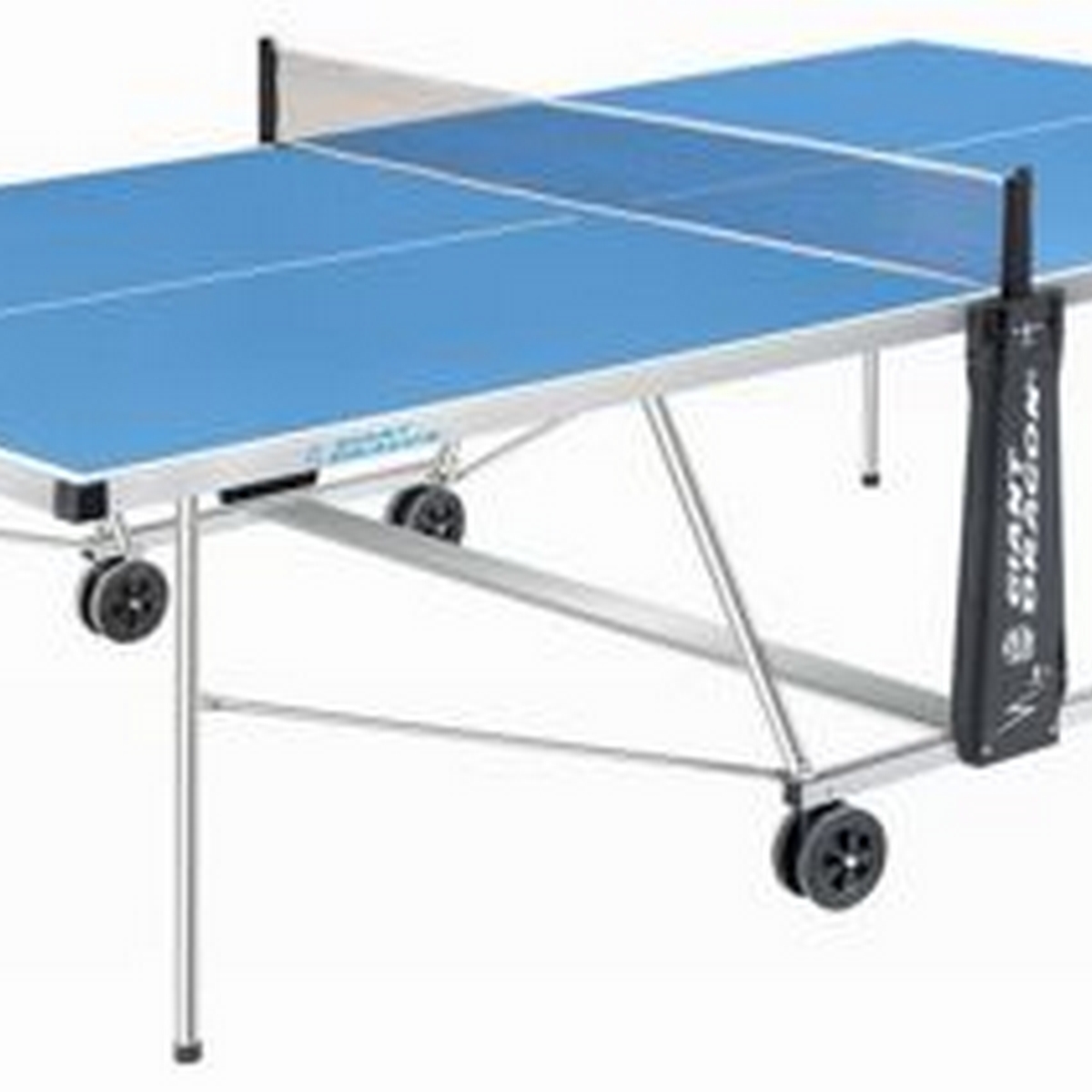 складной, всепогодный с сеткой; для игры при любой погоде на открытом воздухе; размер: 274х152,5х76 см.; основной каркас:алюминиевый профиль 15х35 см.; плита: алюминий, верхнее покрытие 4 мм крашеный алюминий; транспортировка: поворотные колеса 4х125 мм., без тормоза; вес стола: 31 кг.
