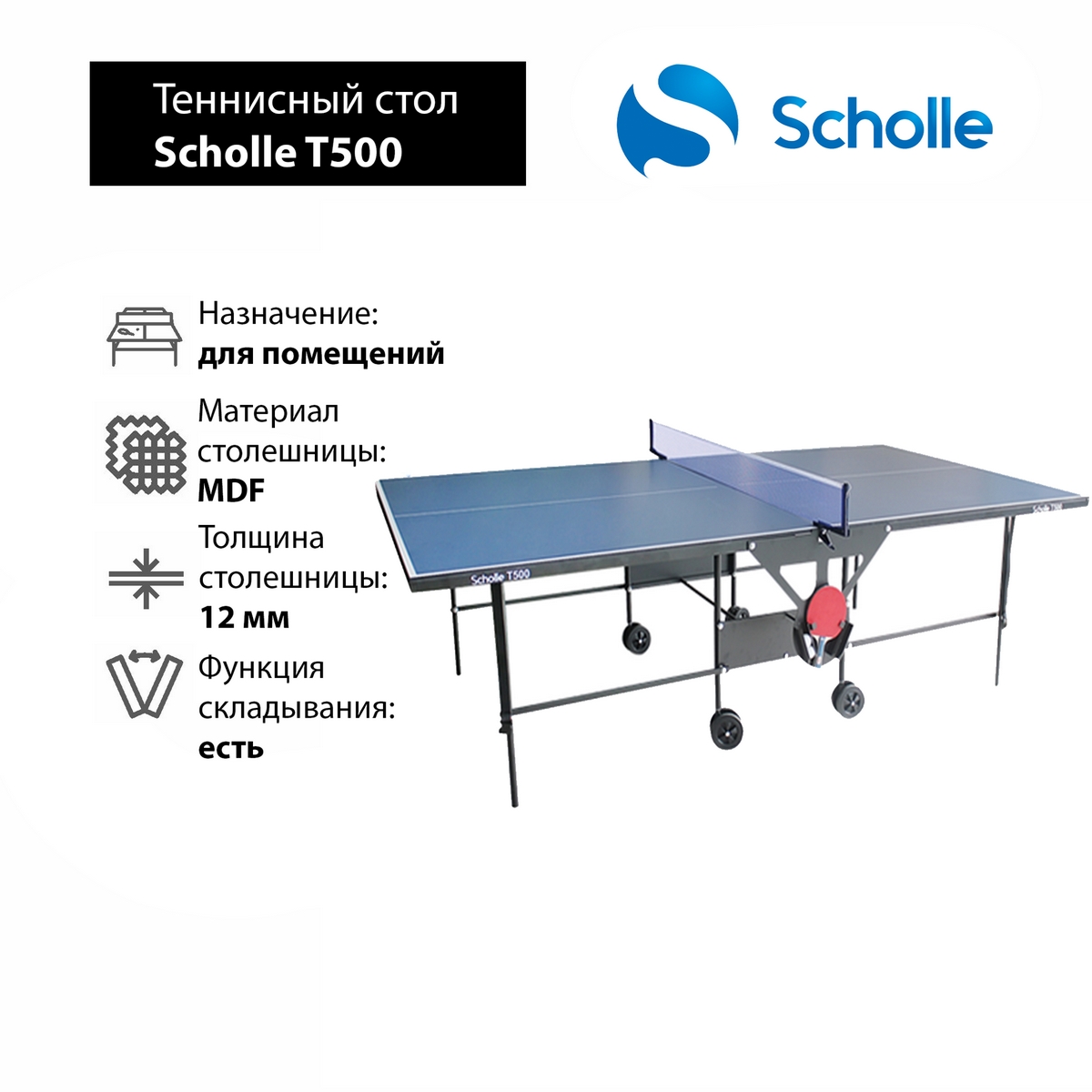 Высококачественный теннисный стол Scholle T500 сделан по последним технологиям и предлагает максимальную функциональность и удобство использования. Столешница состоит из 12 мм качественного МДФ материала с антибликовым покрытием, который имеет высокую прочность и влагоустойчивость, а также обеспечивает великолепный отскок теннисного мяча. При этом материал является экологичным, что важно для использования внутри помещений.