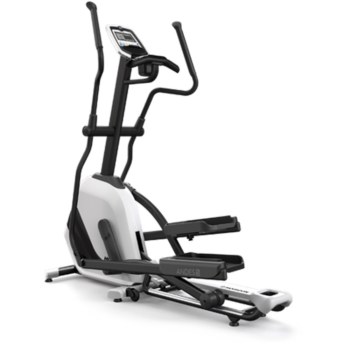 Horizon Andes 5 VIAFIT относится к классу крупногабаритных эллиптических эргометров. За плавность хода и выверенную биомеханику отвечает несколько запатентованных компонентов. Во-первых, это технология ECB Magnetic Brake™. По своей сути это специальный приводной блок с использованием самых качественных подшипников, где количество трущихся частей сведено к минимуму. ECB Magnetic Brake™ обеспечивает неповторимую плавность и тишину вращения, а также ровный бесступенчатый переход от одного уровня нагрузки к другому. Во-вторых, это педально-рычажный узел по технологии изменяемых осей ErgoFlow™. В каждой точке траектории движения изменяемые оси ErgoFlow™ создают естественные оптимальные углы, минимизируя излишнюю, и потому опасную нагрузку на колени и акцентируясь на мышцах бедер и ягодиц. Еще одна особенность этой технологии - равномерное распределение нагрузки и отсутствие так называемых "мертвых зон" на всем цикле вращения. Подавляющее большинство эллипсов других производителей грешат, в большей или меньшей степени, наличием таких зон. В-третьих, это супермалый Q-фактор (E.S.Q.F.™), всего 56 мм. Поскольку эллиптические тренажеры берут за основу беговые движения, расстояние между педалями должно быть как можно меньше. Супермалый Q-фактор возможно реализовать только на высокотехнологичных эллипсах с фронтально расположенным маховиком.