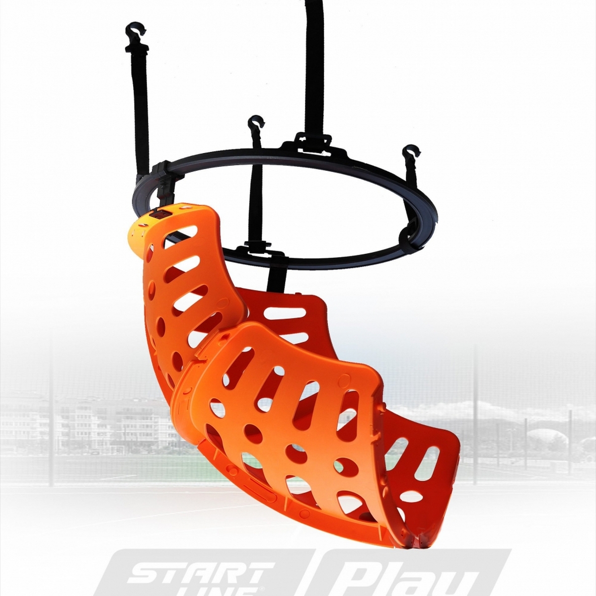 Устройство по возврату мяча от Start Line Play очень удобен при выполнении бросков в кольцо с различных направлений. Возвратный механизм крепится к кольцу баскетбольной стойки, имеет наклонный желоб. После броска мяч скатывается по желобу к спортсмену.