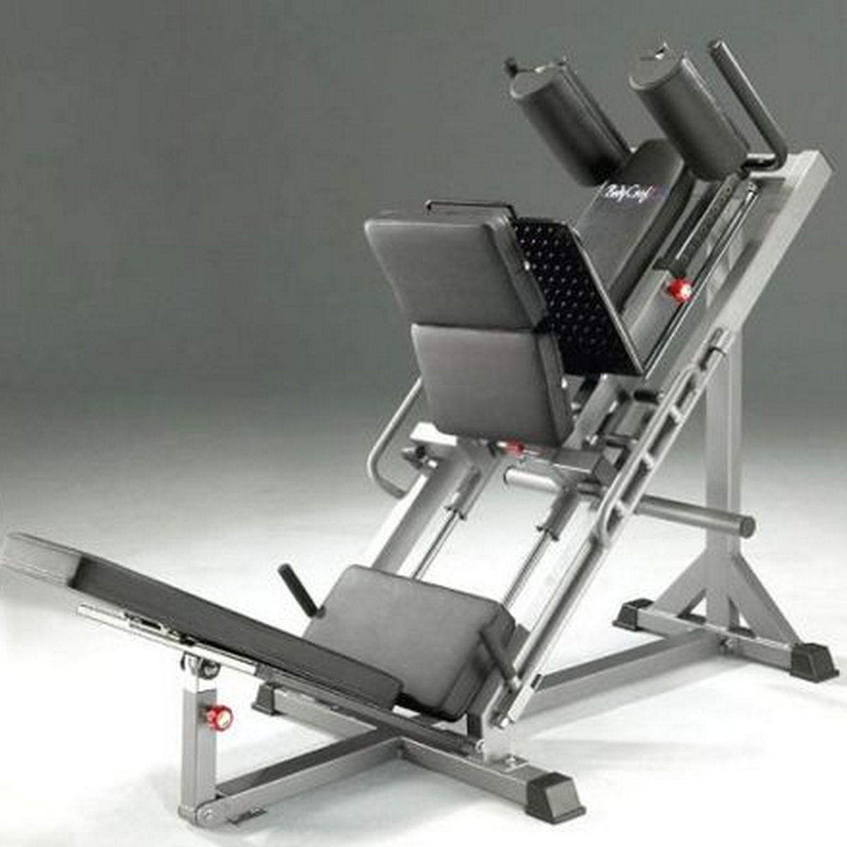 BodyCraft "жим ногами" F660 позволяет выполнять целевые тренировки мышц ног и ягодиц. BodyCraft "жим ногами"/Гак-амшина имеет устойчивую стальную конструкцию и детали высшего качества, которые обеспечивают возможность проводить самые интенсивные тренировки. Вы имеете возможность тренироваться с нагрузкой до 500 кг.