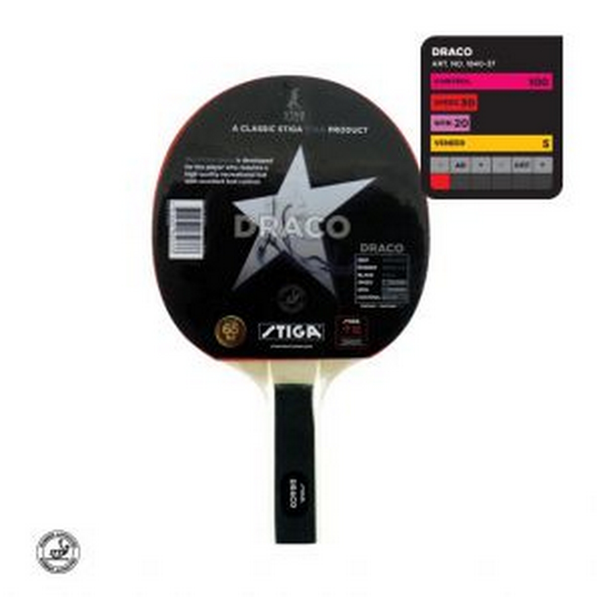 Основание ракетки собрано из 5-и слоев шпона Американской липы и Серебристого тополя. Накладки: Magic D10, губка 1А 1,5 мм. Ракетка Draco разработана для игроков, которым нужна высококачественная любительская ракетка с превосходным контролем мяча.